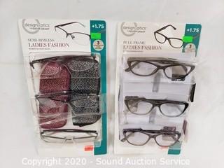 Lot #0185: 6 Design Optics +1.75 Reading Glasses