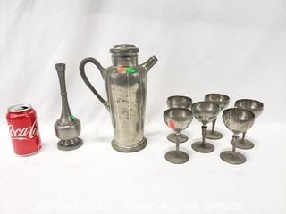 Lot Details: Included Metalars vase and KSG pitcher with 6 goblets.