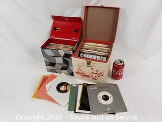 Lot #0059: Approx. 80+ Vtg. 45 Records w/2 Cases