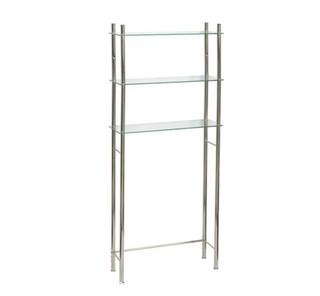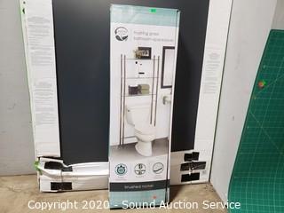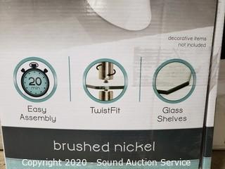 Lot #0289: Brushed Nickel Floating Glass Bathroom Space Saver