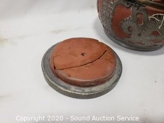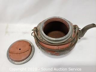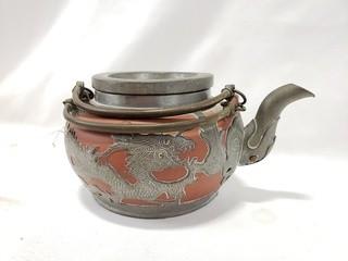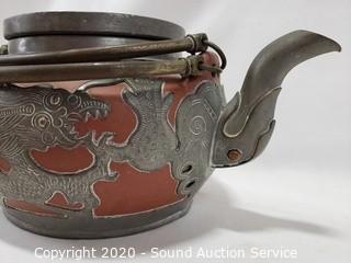 Lot #0061:     Chinese Pewter & Pottery Teapot w/Copper Planters