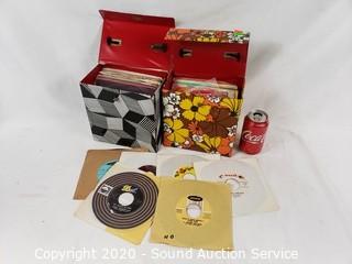 Lot #0170: Collection of Vtg. 45 RPM Record Albums w/2 Cases