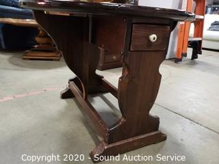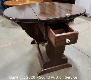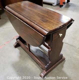 Lot Details: Some wear to the finish. 23" H x 14" x 28" with (2) 10" drop leaves and single drawer.