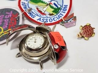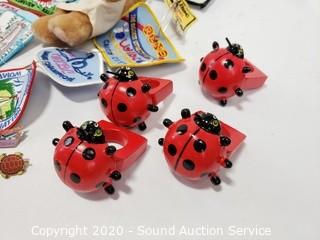Lot Details: One is decorated with buttons and ladybug pins, comes with ladybug clock and 4 napkin rings, 38" x 38". Other is decorated with charms, ladybug and other pins and bowling patches, 17" x 10".