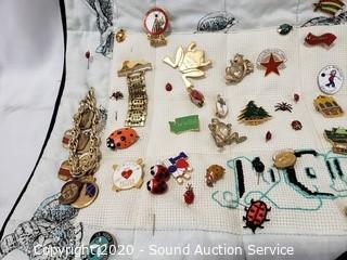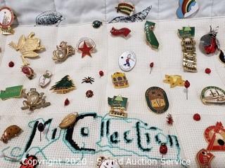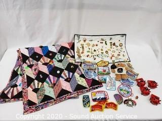 Lot #0062: Handcrafted Quilt Decor w/Pins & Patches