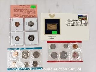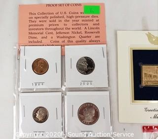 Lot Details: Stamp is "Greetings from Maine" 2002, 1971-U.C. & mixed date 1964-2005 proof sets. ATTN: We are not coin or currency experts or graders, please use your own judgement when bidding.