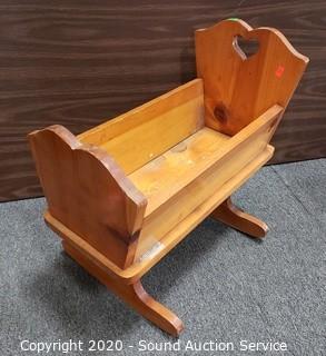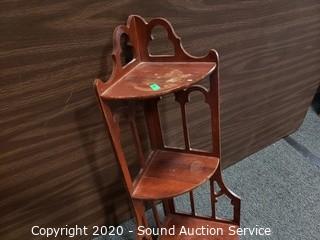 Lot #0203: 2 Knick Knack Corner Shelves & Pine Bassinet