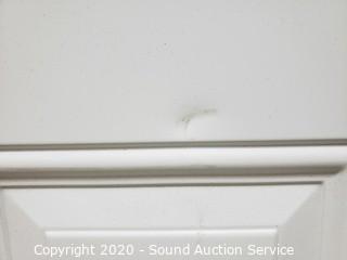 Lot Details: Door has some dents and scuffs, jamb has a scuff along the top. Left hand in-swing, double bore. Overall with jamb 82" H x 37-1/4" W x 4.5" D.
