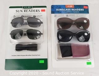 Lot #0256: 4 New Sun Readers +1.25 Reading Glasses w/Cases