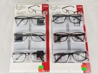 Lot #0255: 6 Design Optics +3.0 Reading Glasses w/6 Cases