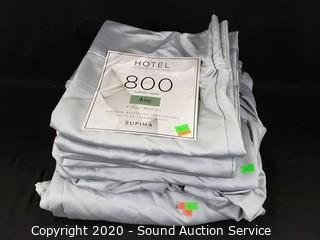 Lot Details: Blue. 800 thread count cotton sateen. 1 flat, 1 fitted & 4 pillowcases. Like new condition.