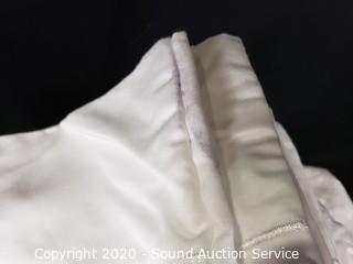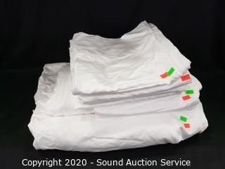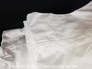 Lot Details: White. 800 thread count cotton sateen. 1 flat, 1 fitted & 4 pillowcases. One pillow case has a small purple mark in the seam, otherwise like new, no issues.