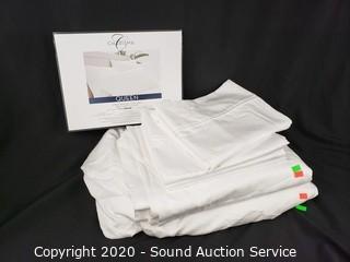 Lot Details: White. 800 thread count cotton sateen. 1 flat, 1 fitted & 4 pillowcases. Like new, no issues.