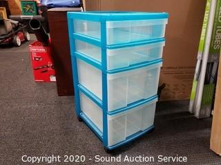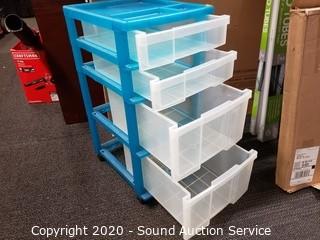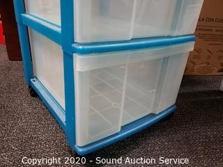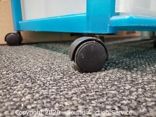 Lot #0282: Blue & Clear Plastic Rolling Plastic Organizer