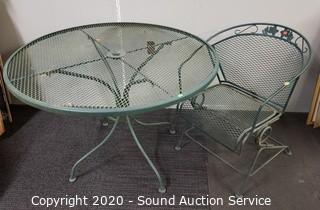 Lot #0033: Green Steel Patio Table & Chair