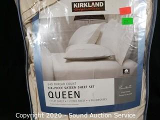Lot #0222: Kirkland 6pc Ivory Queen Sateen Sheet Set