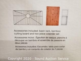 Lot Details: Comes with basin rack, bamboo cutting board, & two piece colander set. 33" x 22" x 9" D. Comes in original box.
