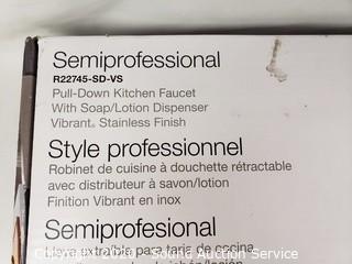 Lot Details: Stainless finish, with soap/lotion dispenser. Model R22745-SD-VS. Appears to be complete.