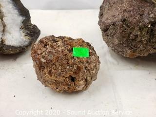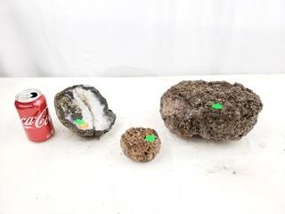 Lot #0309: Quartz Thunder Egg Geode & Lava Rock Quartz Stones