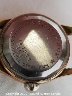 Lot Details: Ladies Hydepark is marked "Plaquered 20 Microns", The Timex held at 10K acid test, not positive it is gold. The band on the ladies watch has been repaired.