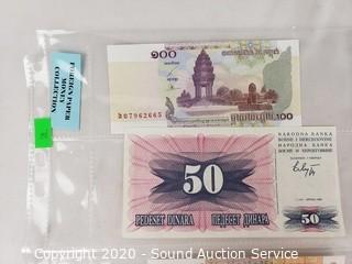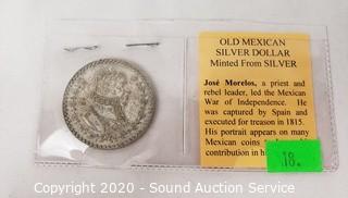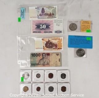 Lot Details: 2000 Republic of Liberia $10 coin, 1961 Old Mexican silver dollar, and other foreign paper & coin currency. ATTN: We are not coin or currency experts or graders, please use your own judgement when bidding.