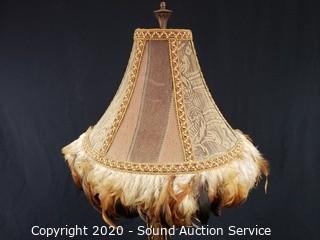 Lot #0345w: Victorian Style Feather Fringe Shade Table Lamp