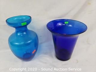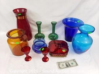 Lot #0198: 10pc Colorful Art Glass Vases & Decor
