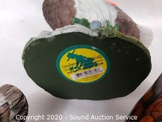 Husqvarna YT 42DXLS 42" Lawn Mower, Craftsman Lawn Tractor Dump Trailer, Native 8'ft Chainsaw Bear Carving Totem, Live Potted Plants/Trees/Shrubs, Leather Stressless Recliners w/Ottomans, Lighted Curio Cabinets, Antique Victrola Talking Machine Record Player, Nice Teal Leather Sofa with Ottoman, Seashell Decor, Chirstmas Decor, Gold Jewlery, German Dresden Victorian Man & Lady Statuaries, 34pc Homer Laughlin "Virginia Rose" China Dish Set, Various Decor & So Much More!!!
