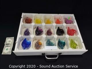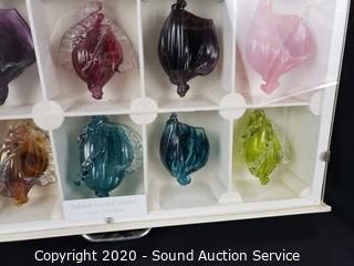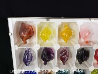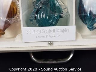 Lot #0100: 15pc Art Glass Seashells w/Display