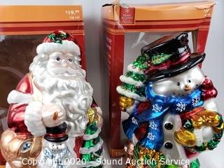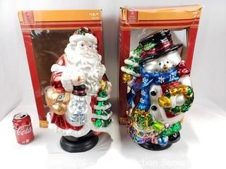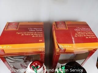 Lot #0094: 17" Mercury Glass Santa & Snowman