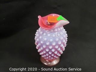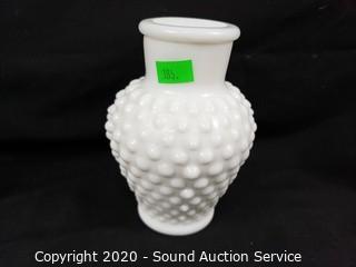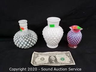 Lot #0185: 3pc Hobnail Art & Milk Glass Vases
