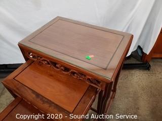 Husqvarna YT 42DXLS 42" Lawn Mower, Craftsman Lawn Tractor Dump Trailer, Native 8'ft Chainsaw Bear Carving Totem, Live Potted Plants/Trees/Shrubs, Leather Stressless Recliners w/Ottomans, Lighted Curio Cabinets, Antique Victrola Talking Machine Record Player, Nice Teal Leather Sofa with Ottoman, Seashell Decor, Chirstmas Decor, Gold Jewlery, German Dresden Victorian Man & Lady Statuaries, 34pc Homer Laughlin "Virginia Rose" China Dish Set, Various Decor & So Much More!!!