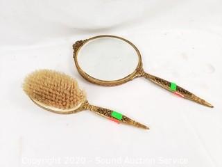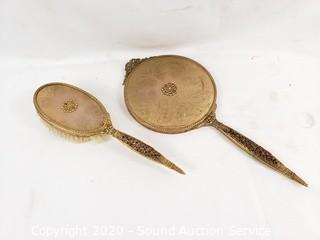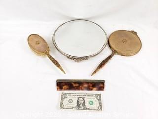 Lot Details: Includes brush, hand mirror, comb and mirrored tray.