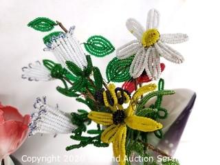 Lot #0351: 5 Beautiful Hand Painted Vases w/Beaded Flowers