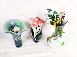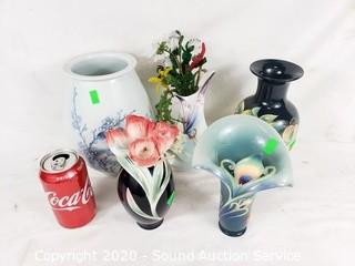 Lot Details: 7" to 9" tall. 3 are Franz one has beaded flowers, one has an Asian signature, other is unmarked.