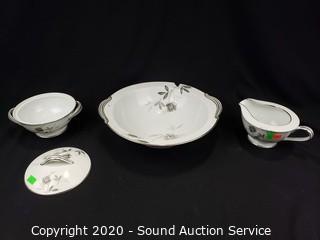 Husqvarna YT 42DXLS 42" Lawn Mower, Craftsman Lawn Tractor Dump Trailer, Native 8'ft Chainsaw Bear Carving Totem, Live Potted Plants/Trees/Shrubs, Leather Stressless Recliners w/Ottomans, Lighted Curio Cabinets, Antique Victrola Talking Machine Record Player, Nice Teal Leather Sofa with Ottoman, Seashell Decor, Chirstmas Decor, Gold Jewlery, German Dresden Victorian Man & Lady Statuaries, 34pc Homer Laughlin "Virginia Rose" China Dish Set, Various Decor & So Much More!!!