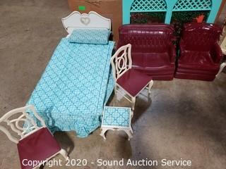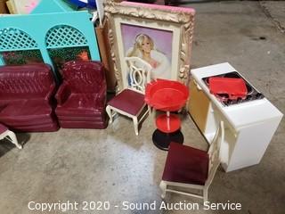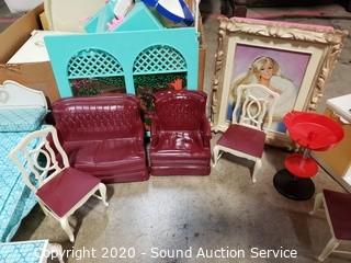 Husqvarna YT 42DXLS 42" Lawn Mower, Craftsman Lawn Tractor Dump Trailer, Native 8'ft Chainsaw Bear Carving Totem, Live Potted Plants/Trees/Shrubs, Leather Stressless Recliners w/Ottomans, Lighted Curio Cabinets, Antique Victrola Talking Machine Record Player, Nice Teal Leather Sofa with Ottoman, Seashell Decor, Chirstmas Decor, Gold Jewlery, German Dresden Victorian Man & Lady Statuaries, 34pc Homer Laughlin "Virginia Rose" China Dish Set, Various Decor & So Much More!!!