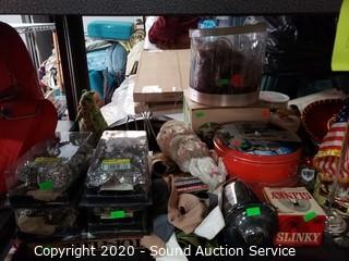 Husqvarna YT 42DXLS 42" Lawn Mower, Craftsman Lawn Tractor Dump Trailer, Native 8'ft Chainsaw Bear Carving Totem, Live Potted Plants/Trees/Shrubs, Leather Stressless Recliners w/Ottomans, Lighted Curio Cabinets, Antique Victrola Talking Machine Record Player, Nice Teal Leather Sofa with Ottoman, Seashell Decor, Chirstmas Decor, Gold Jewlery, German Dresden Victorian Man & Lady Statuaries, 34pc Homer Laughlin "Virginia Rose" China Dish Set, Various Decor & So Much More!!!