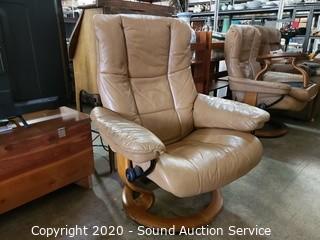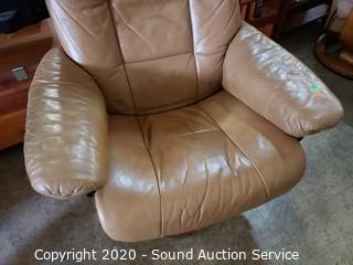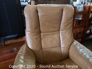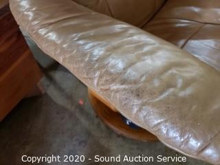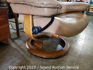Lot #0037: Leather Stressless Recliner w/Ottoman