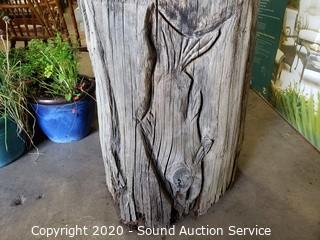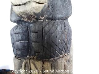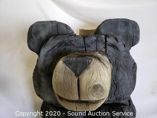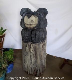 Lot #0002: Lg. Bear & Salmon Chainsaw Carving Totem Sculpture