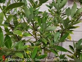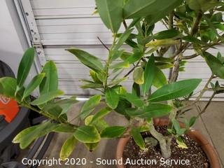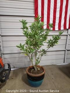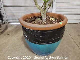 Lot Details: Nice pottery 17x20" pot, has a couple cracks and is duct taped. 52" H x 43" spread.