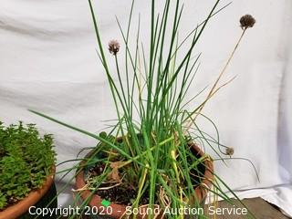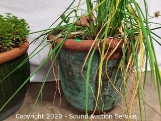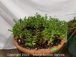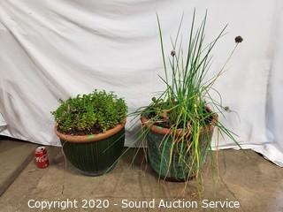 Lot Details: Looks like Spearmint of Peppermint. Smells nice. Approx. 6" & 24" H" with pottery pots, 12" H x 16".