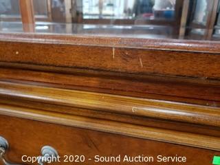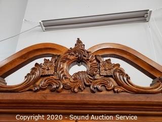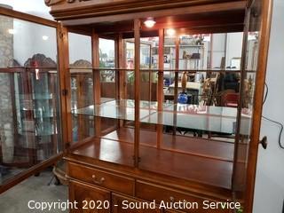 Husqvarna YT 42DXLS 42" Lawn Mower, Craftsman Lawn Tractor Dump Trailer, Native 8'ft Chainsaw Bear Carving Totem, Live Potted Plants/Trees/Shrubs, Leather Stressless Recliners w/Ottomans, Lighted Curio Cabinets, Antique Victrola Talking Machine Record Player, Nice Teal Leather Sofa with Ottoman, Seashell Decor, Chirstmas Decor, Gold Jewlery, German Dresden Victorian Man & Lady Statuaries, 34pc Homer Laughlin "Virginia Rose" China Dish Set, Various Decor & So Much More!!!