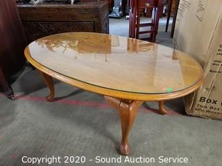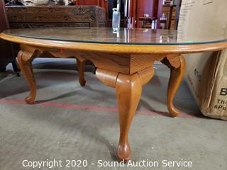 Lot #0072: Oak Cabriole Leg Coffee Table w/Glass Top
