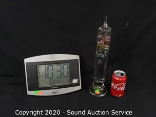 Lot #0165: RadioShack Radio Alarm Clock & Galileo Thermometer