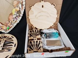 Lot Details: Lantern in unassembled in original box, by Curious Customs. Frame is 17" x 16". Seashell frame has a crack in the glass.