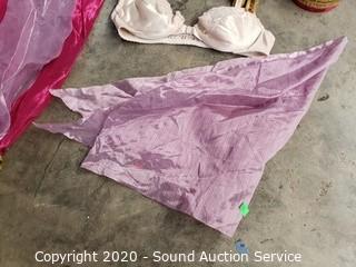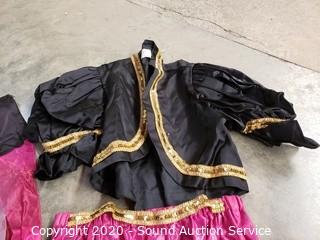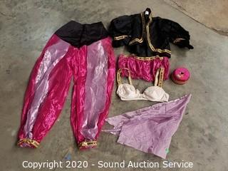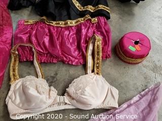 Lot Details: Includes jacket, bra, top, pants, veil and hat. Approx. size small. Some minor staining.