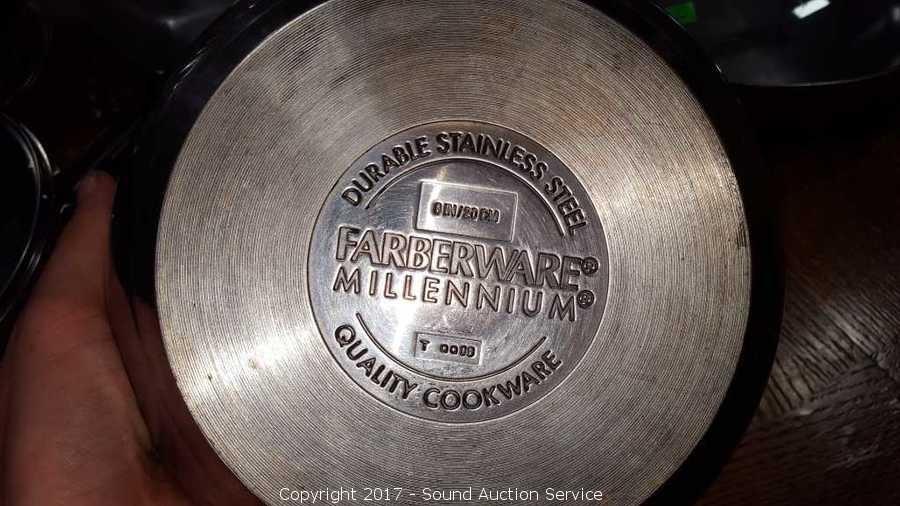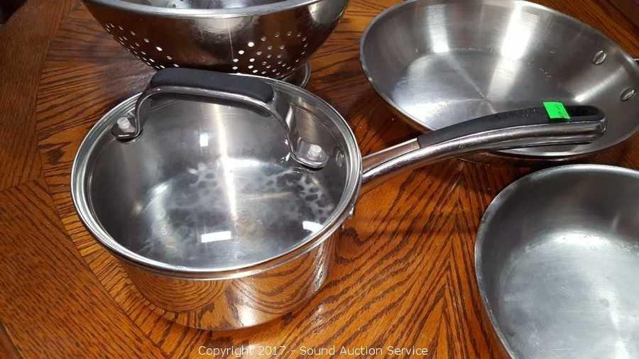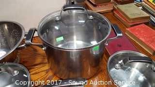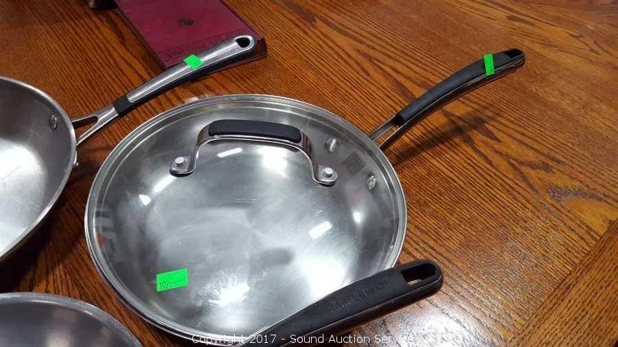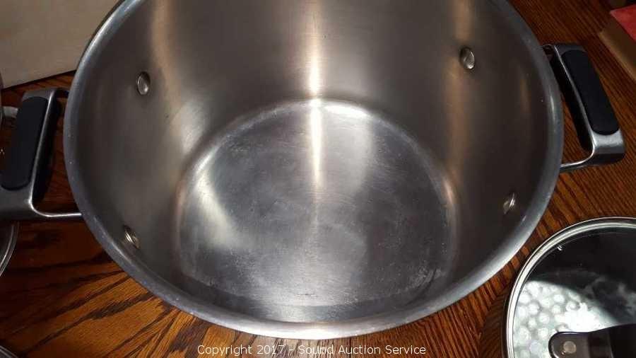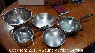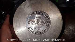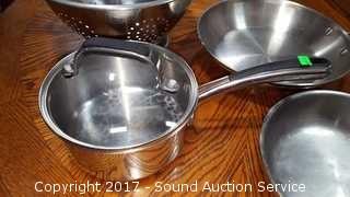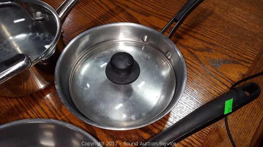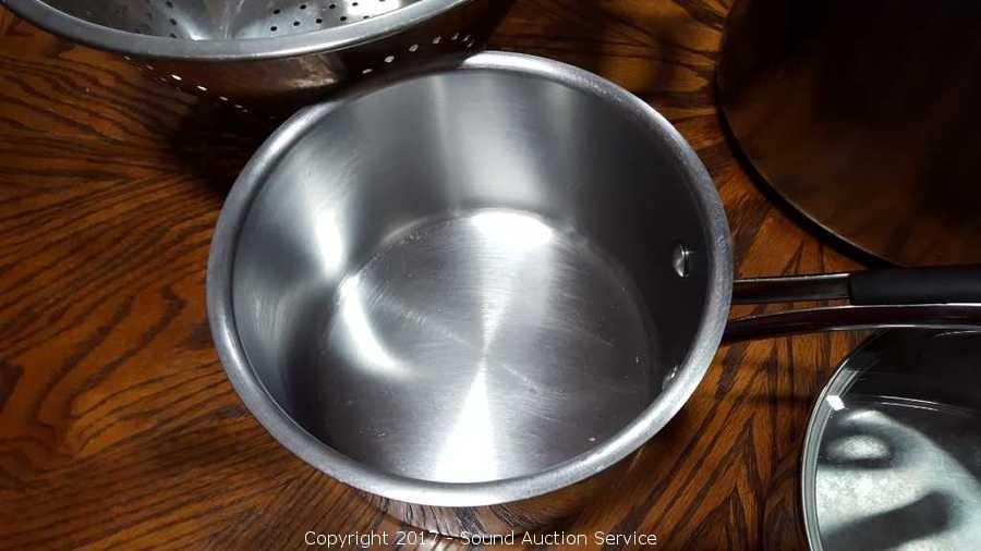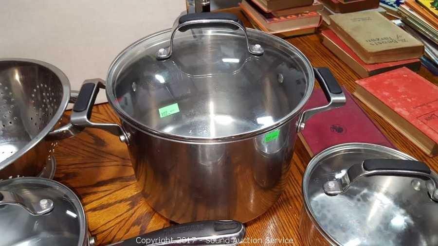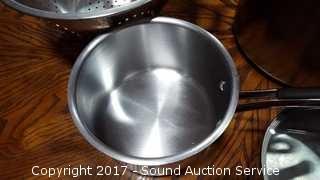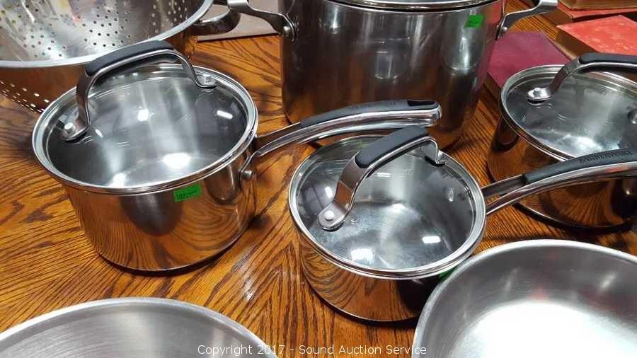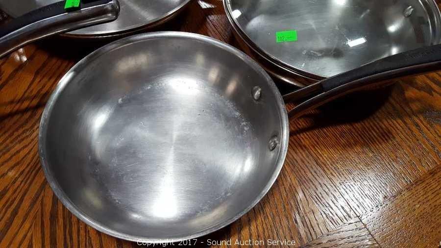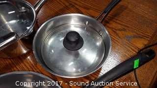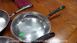 Lot #0102: Farberware & Calphalon Stainless Pots & Pans w/Lids