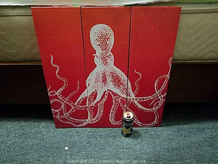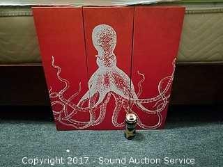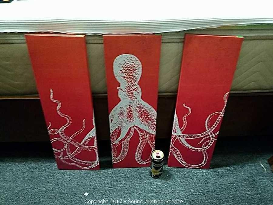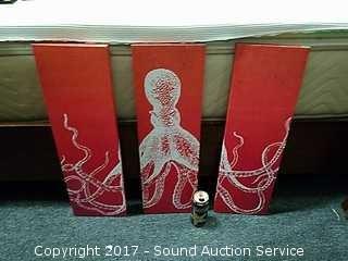 Lot #0144: Giclee Canvas Octopus Wall Trio Artwork