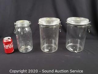 Lot #0321: 2 Acrylic & 1 Glass Canisters
